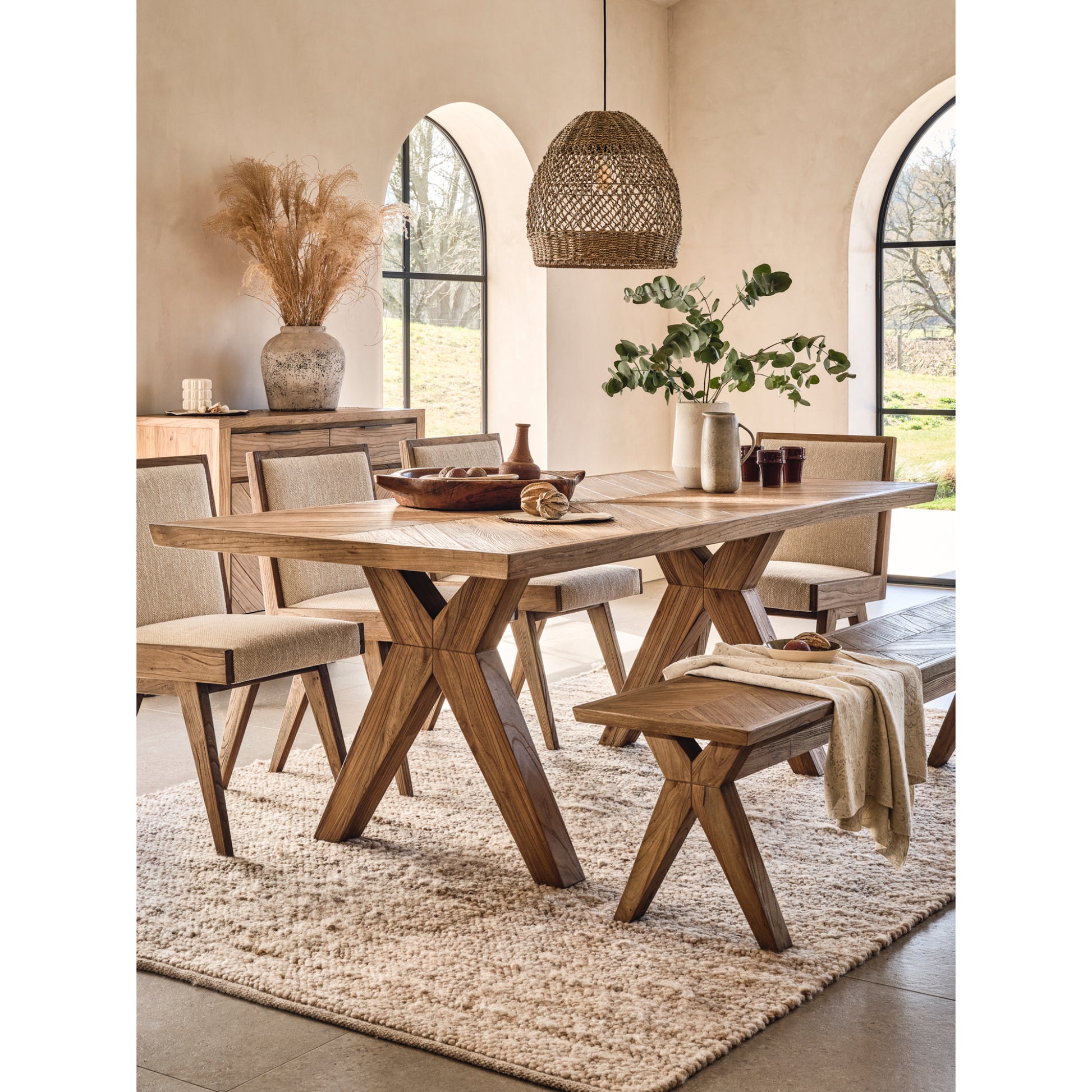 The striking 2-metre-long Sorrento dining table makes a unique design statement. A fabulous centre piece for family and friends to gather around. Pair this with matching chevron topped benches or the sumptuously upholstered Sorrento dining chairs.